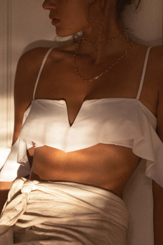 The best selling Cira Top is a seamless design with adjustable straps and a pretty ruffling detail over the shoulders making this a versatile top to wear anywhere.